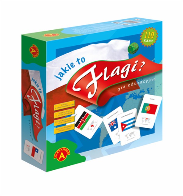 Wspaniała gra edukacyjna, dydaktyczna w 3 wariantach. Po krótkim przejrzeniu katalogu flag z instrukcji zadaniem graczy jest podanie właściwej nazwy państwa, do którego należy flaga wybrana z talii kart lub na której stanął pionek gracza. Drugą częścią zadania jest wskazanie położenia wymienionego państwa na mapie świata. Za każdą prawidłową odpowiedź zostaje przyznany punkt. Zwycięża ten, kto zdobędzie ich najwięcej. W trakcie emocjonującej zabawy gracze uczą się się rozróżniać flagi państwa całego świata, poznają nazwy tych państw i miejsce położenia. Poznają też nazwy ich stolic, a także jaka jest wielkość ich powierzchni i jaki obowiązuje w nich język. Gra doskonale łączy w sobie zabawę z nauką i treningiem pamięci.