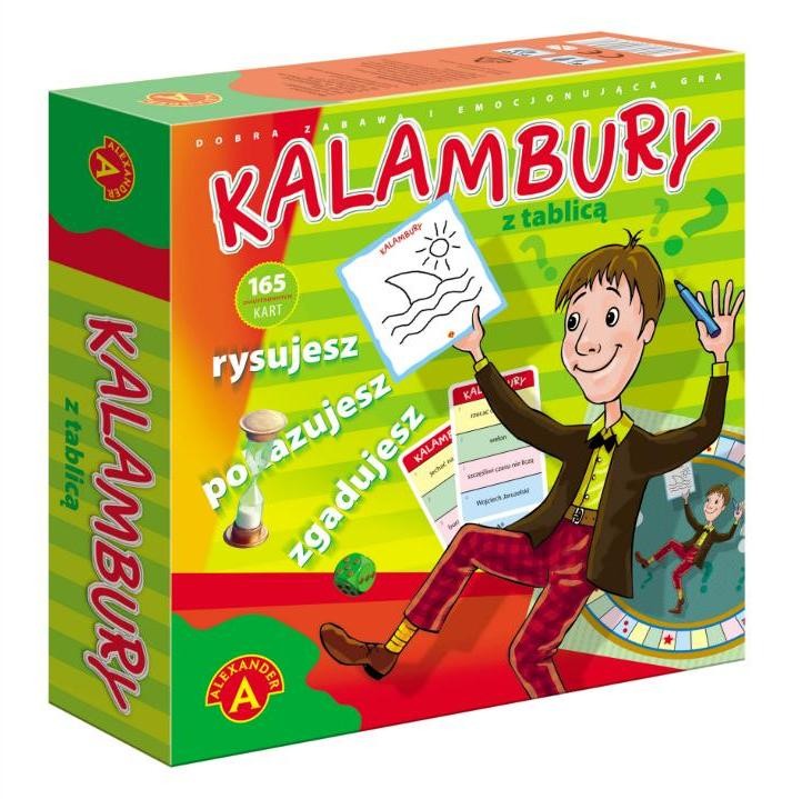"Kalambury z tablicą" to gra zespołowa, w której należy jak najszybciej zgadnąć (przedstawione za pomocą rysunku na tablicy) hasło wybrane losowo z karty.