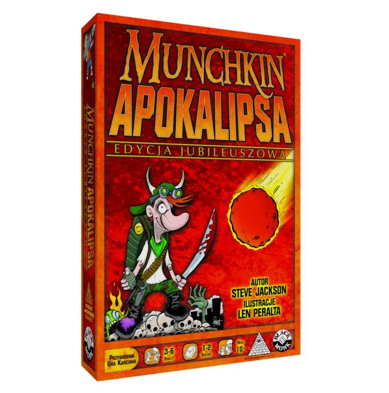 - Munchkin Apokalipsa w Edycji Jubileuszowej sprowadzi na Ciebie katastrofy i pokaże Ci, co znaczy zagłada a wszystko to w zupełnie nowej odsłonie, z grafikami autorstwa Lena Peralty!