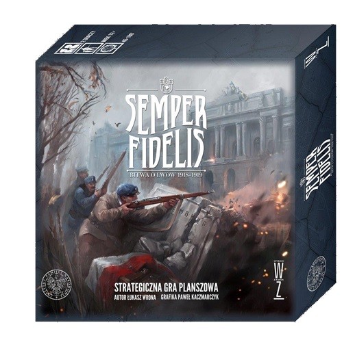 Semper Fidelis to pięknie ilustrowana, planszowa gra strategiczna dla 2 osób, która przedstawia realia walk o Lwów w latach 1918-1919. Gracze wcielą się w role dowódców obu stron, którzy będą starali się opanować miasto i okolice. Rzucą do boju regularne jednostki Strzelców Siczowych, żołnierzy odrodzonego Wojska Polskiego oraz wcielą do szeregów ochotników - zarówno słynnych lwowskich baciarów jak i kobiety i dzieci. Wyposażą ich w broń oraz mundury zdobyte w magazynach należących do armii austro-węgierskiej. Postarają się wykorzystać także artylerię, lotnictwo oraz pociągi pancerne. Spróbują negocjacji z ciągle stacjonującymi w mieście jednostkami austriackimi oraz węgierskimi. Jednak nie mogą zapomnieć o pomocy cywilom, którzy nie tylko potrzebują żywności, ale także narażeni są na ogień nieprzyjacielskich kul i bagnetów. Zbyt wielkie straty wśród ludności lub zniszczenia części miasta mogą skończyć się klęską strony polskiej. Gracze niecierpliwie wyczekiwać będą także na wieści z innych odcinków frontu oraz zaciszy politycznych gabinetów, w których decydowano o losach obu narodów. Semper Fidelis to więc gra strategiczna, która ukazuje wszelkie aspekty prowadzenia wojny. Przygotowanych 5 scenariuszy różni się od siebie tematyką, skalą oraz czasem rozgrywki. Gra powstała we współpracy z Krakowskim Odziałem Instytuty Pamięci Narodowej.