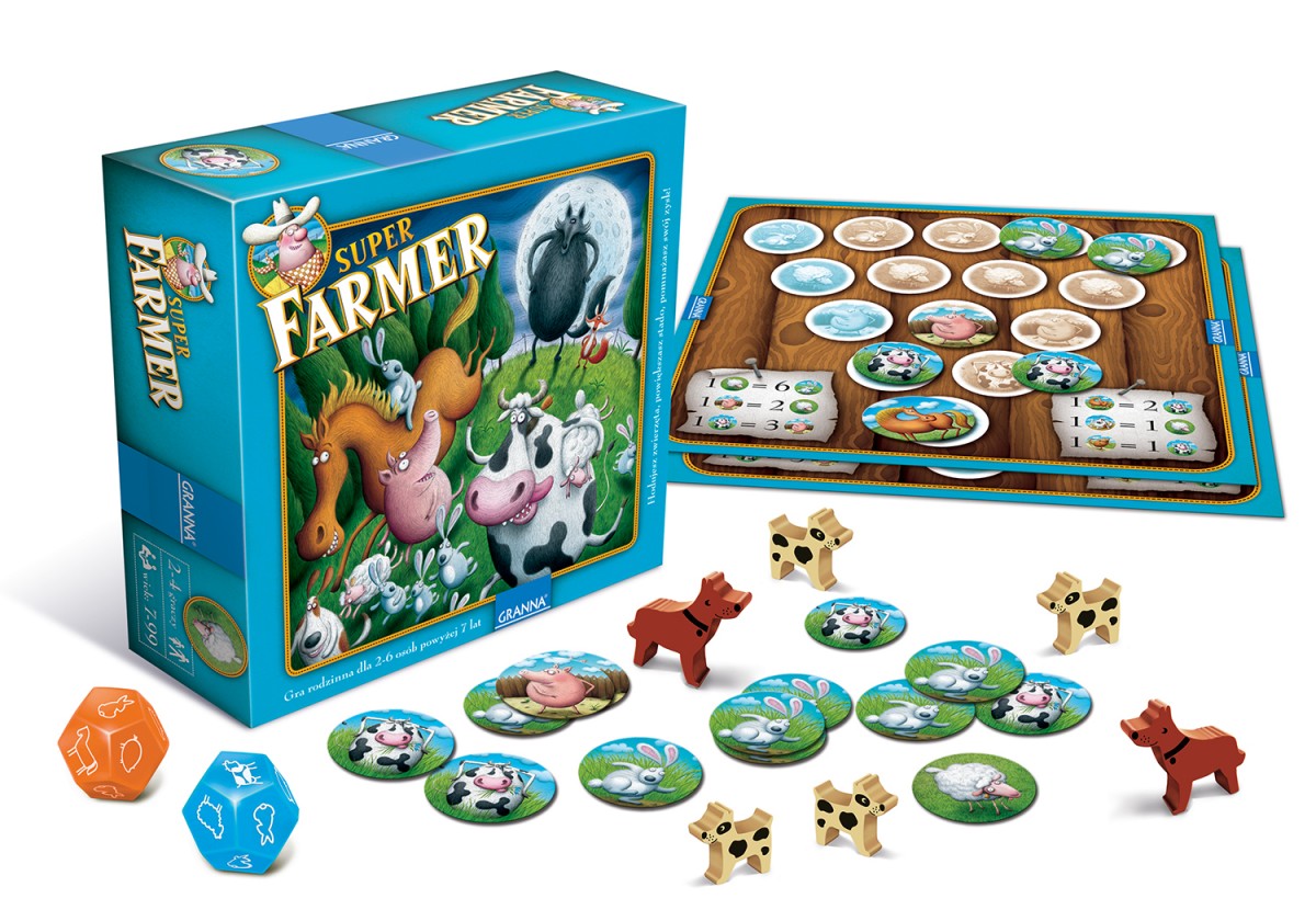 Superfarmer gra rodzinna, która uczy szacowania ryzyka, logicznego myślenia i podstaw matematyki. To sympatyczna rozrywka dla całej rodziny. Gra została wymyślona przez wybitnego polskiego matematyka profesora Karola Borsuka w czasie II wojny światowej.