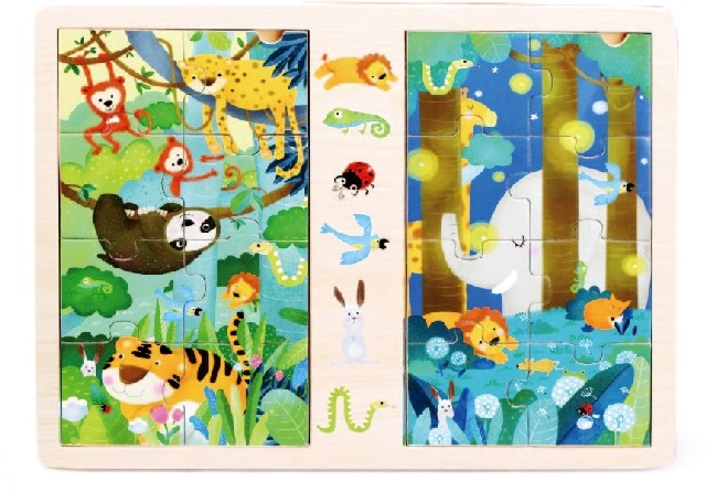 Gra i puzzle drewniane TOP BRIGHT - Dżungla, 2 x 8 elementów