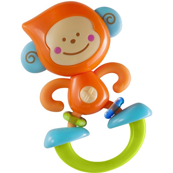 Kolorowy gryzaczek z małpką bebe to idealny kompan do zabawy dla niemowlaków.