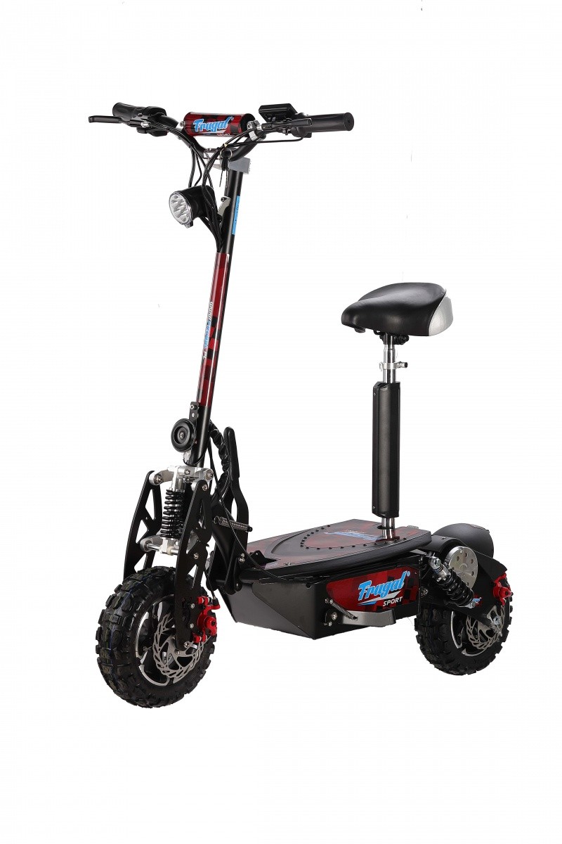 Hulajnoga elektryczna FRUGAL Sport w wersji z 10" kołami i oponą typu off road - to nasz największy i najszybszy model dla profesjonalistów. Wydajny silnik napędza hulajnogę nawet do 40 km/h, a zasięg jednego ładowania wynosi do 30 km. Hulajnoga FRUGAL Sport jest składana dzięki czemu można ją przewozić i wygodnie przechowywać. Dodatkowo została wyposażona w siedzisko, które łatwo da się zamontować i zdemontować dzięki systemowi szybkiego montażu. Wersja Sport różni się od swoich kuzynów, modeli Compact, większym rozmiarem oraz większą ilością akumulatorów, co przekłada się na jej sportowe osiągi.