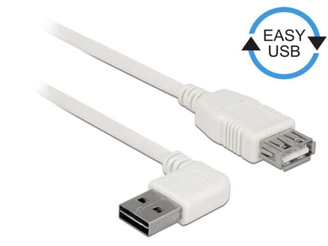 Kabel USB AM-AF 2.0 0.5m biały kątowy lewo/prawo Easy-USB