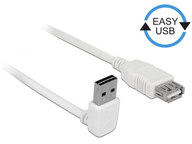 Kabel USB AM-AF 2.0 1m biały kątowy góra/dół Easy USB