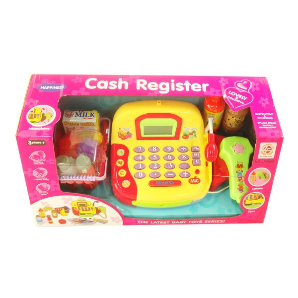 Kolorowa kasa sklepowa na baterie z akcesoriami do zabawy w sklep.