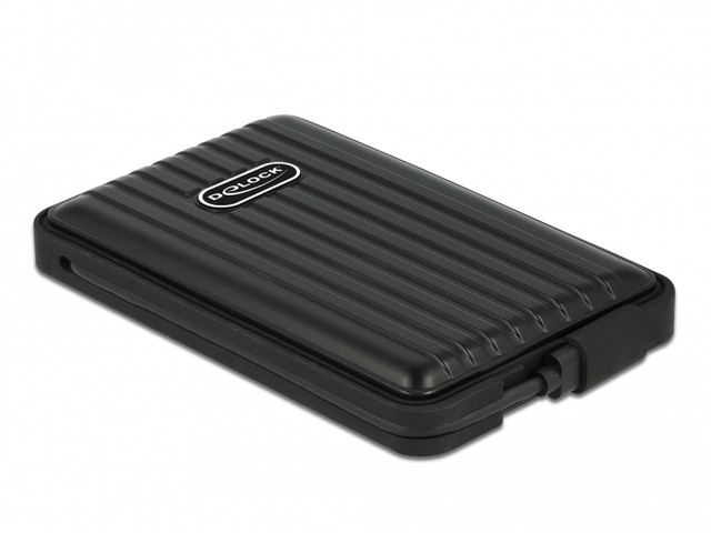 Obudowa Delock może być użyta do instalacji dysku SATA 2.5 lub SDD o wysokości do 9,5 mm. Dzięki zintegrowanemu kablowi USB-C obudowę można szybko podłączyć do komputera lub laptopa.