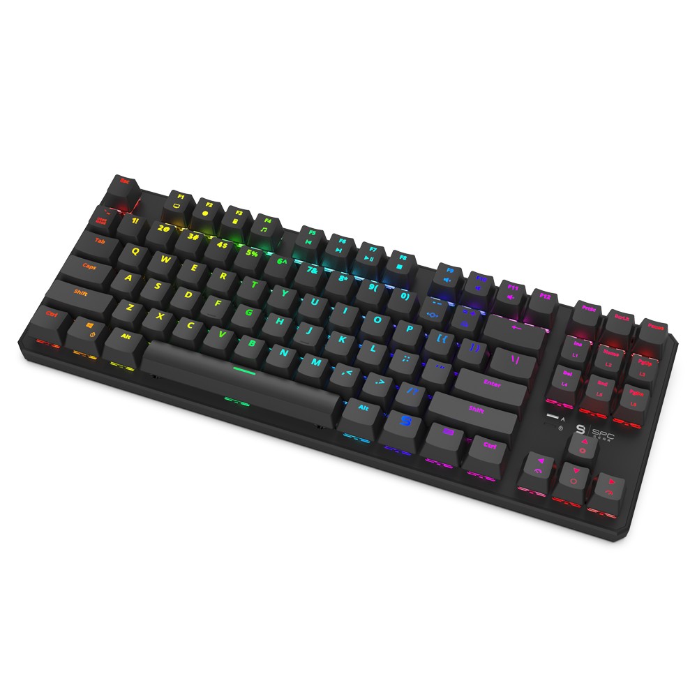 SPC Gear GK530 Tournament to mobilna wersja klawiatury Gamingowej SPC Gear. 87 przycisków, kompaktowy rozmiar metalowy top obudowy, punktowe podświetlenie RGB, przełączniki Kailh i programowalne makra czynią z niej doskonały wybór dla graczy domowych i turniejowych.