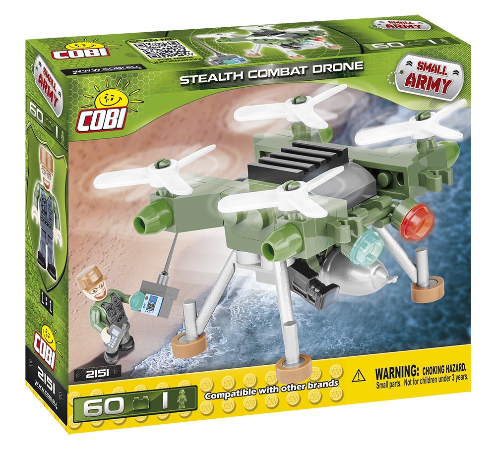 Ten niewielki dron ma ruchome elementy konstrukcji takie jak: obrotowe śmigła oraz opuszczaną klapę, w której znajduje się regulowana kamera. Dodatkowo dron wyposażony jest w przenośną bombę. Żołnierze mogą sterować dronem za pomocą radionawigacji. Wymiary zestawu: 7,5 cm x 4,5 cm