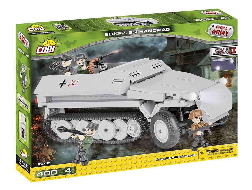 Zestaw Hanomag Sd.Kfz. 251 zawiera 400 klocków, z których można zbudować transporter opancerzony o długości 23,5 cm, szerokości 8 cm i wysokości 8,5 cm. Światła transportera świecą w ciemnościach, a koła są obracalne.