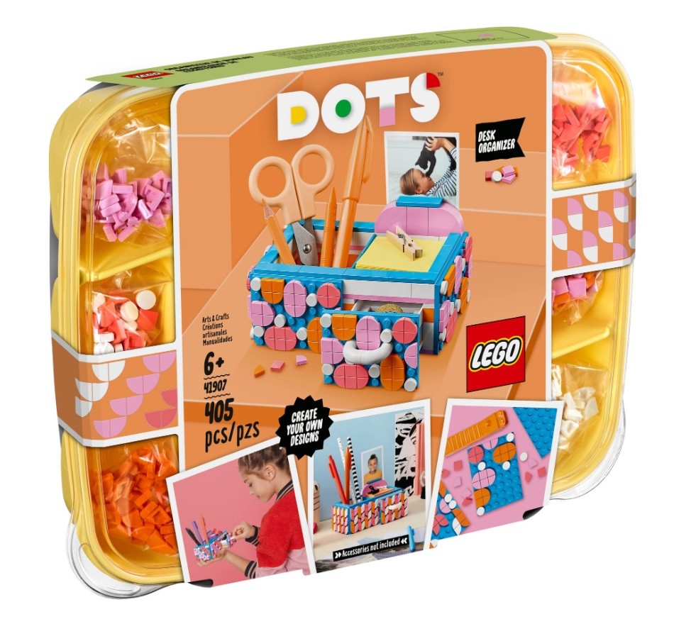 - Podaruj dziecku zestaw LEGO DOTS (41907) z organizerem na biurko, by zachęcić je do ćwiczenia wyobraźni. W zestawie jest wielokolorowa, dwuczęściowa skrzyneczka, uchwyt na zdjęcie oraz otwierana szufladka. Zabawa zaczyna się od składania klocków wystarczy wysypać je z pojemnika!