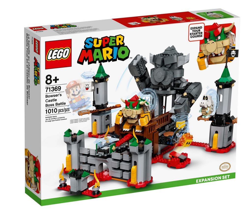 - W tym zestawie konstrukcyjnym LEGO Super Mario znajdują się figurki Bowsera, Dry Bonesa, Boo i Lava Bubble, a także wieże zamkowe z obrotowymi i drgającymi platformami, blok z pytajnikiem, blok czasu i inne elementy, które zwiększają frajdę podczas zabawy.