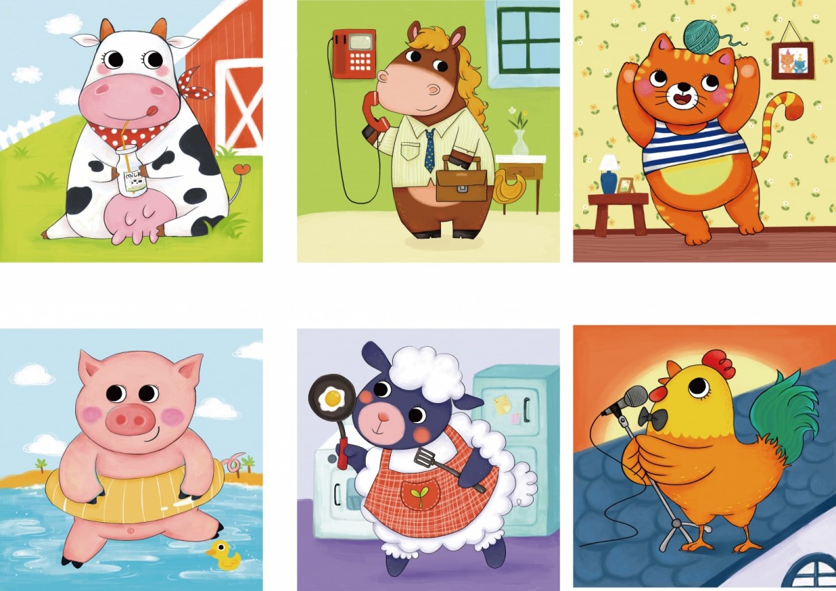 - Klocki drewniane z motywem zwierząt hodowlanych firmy Top Bright.
