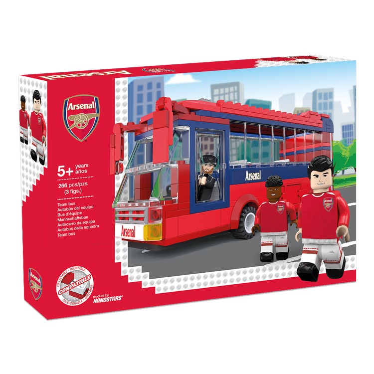 Zbuduj oficjalny autobus Arsenalu. To ponad 265 elementów czystej zabawy. W opakowaniu znajdują się figurki 2 graczy, 1 autobus i 1 kierowca. Przewieź graczy z ulubionej drużyny do miejsca, w którym grają mecz. Zawiera instrukcje, które ułatwiają montaż.