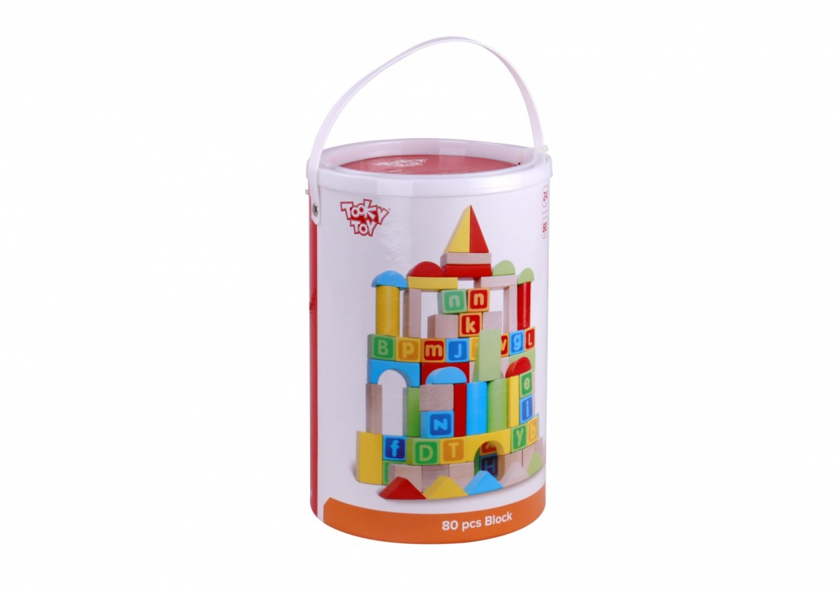 Drewniane Klocki inspirują maluchy do aktywnej zabawy. Zestaw składa się z 80 elementów, które idealnie dopasowują się do małej rączki dziecka. Całość została zapakowana w duże tekturowe wiaderko z uchwytem.