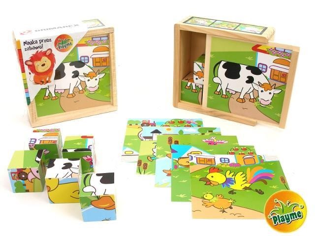 Strona główna Klocki obrazkowe Klocki drewniane w skrzynce - Farma Cena Netto: 12,86 zł. error_outline Produkt chwilowo niedostępny. Opis Klocki drewniane w skrzynce - Farma9 klocków w drewnianym pudełku daje możliwość ułożenia 6 obrazków.W zestawie znajdują się obrazki poglądowe, które ułatwią dziecku samodzielne układanie.