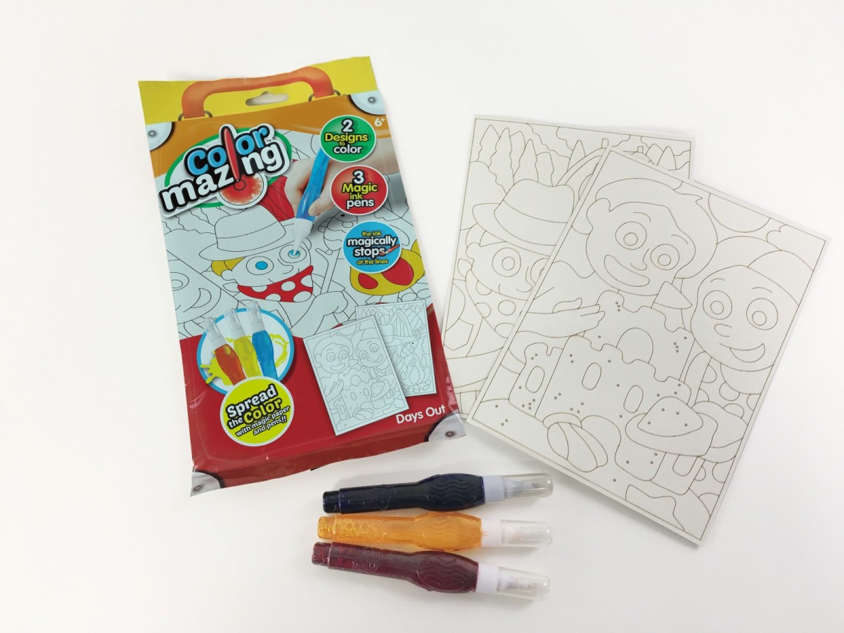 Colourmazing Wolne Dni to nowy, innowacyjny i ekscytujący sposób na kolorowanie! Rozprowadzaj atrament, mieszaj kolory razem i patrz, jak atrament magicznie zatrzymuje się na liniach, aby tworzyć fantastyczne bajkowe obrazy. Colourmazing to świetny sposób na zapewnienie dzieciom rozrywki podczas podróży lub w domu, jako rozrywkę w deszczowe dni. Zawiera dwa zabawne wzory do pokolorowania i trzy pisaki z magicznym atramentem.