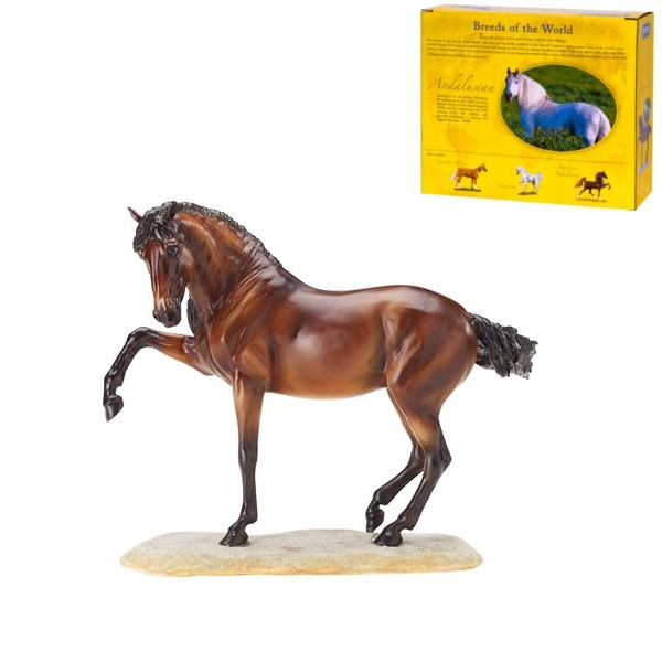 Koń andaluzyjski to rasa powstała na Półwyspie Iberyjskim. Oficjalną nazwę tej rasy wprowadził Hiszpański Związek Hodowców Koni w 1912 r. i brzmi ona Czysta Rasa Hiszpańska. Z racji tego, że hoduje ją się na obszarze całej Hiszpanii używa się najczęściej terminu koń hiszpański. Poza Hiszpanią rasa ta jest jednak określana terminem koń andaluzyjski. Andaluzy wykorzystywane były dawniej w wojnach i walkach z bykami, a dzisiaj te atletyczne konie uważa się do klasycznego ujeżdżenia. Model konia dzięki temu, iż jest na stałe zamocowana do podstawy jest idealna do eksponowania.Produkt nie jest zabawką, sprzedawany wyłącznie jako wyrób kolekcjonerski.