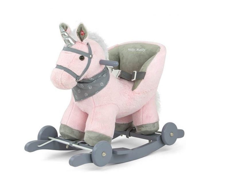 Mięciutki konik na biegunach Polly zaprojektowany został z myślą o najmłodszych dzieciach (12m+) dla których tradycyjne koniki na biegunach są za duże. Wygodne, wyprofilowane siedzisko w kształcie kanapy i regulowane pasy zapewnią komfort i bezpieczeństwo podczas beztroskiego bujania i przemieszczania maluszka.