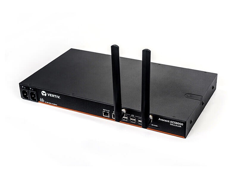 Konsole szeregowe Vertiv Avocent ACS 8000 zapewniają bezpieczną widoczność wewnątrz pasma i poza pasmem oraz kontrolę nad urządzeniami znajdującymi się za nimi w centrach danych przedsiębiorstwa, a także w obiektach chmurowych i kolokacyjnych.