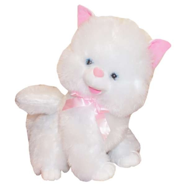 Kotek wykonany z puchatego pluszu najwyższej jakości, ma śliczne szpiczaste uszka i ozdobna kokardkę. Będzie również piękną ozdobą każdego pokoju, zwłaszcza młodej damy.