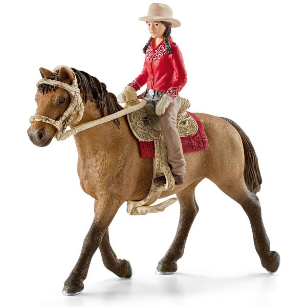 Zestaw zawiera figurkę jeźdźca i konia z wyposażeniem w stylu western.