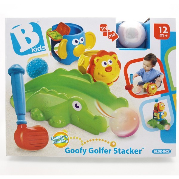 W zestawie: kij do golfa, 1 świecąca piłka, 1 piłka do golfa i 3 dołki w kształcie zwierząt. Maluchy mogą układać przeróżne kombinacje zestawu.
