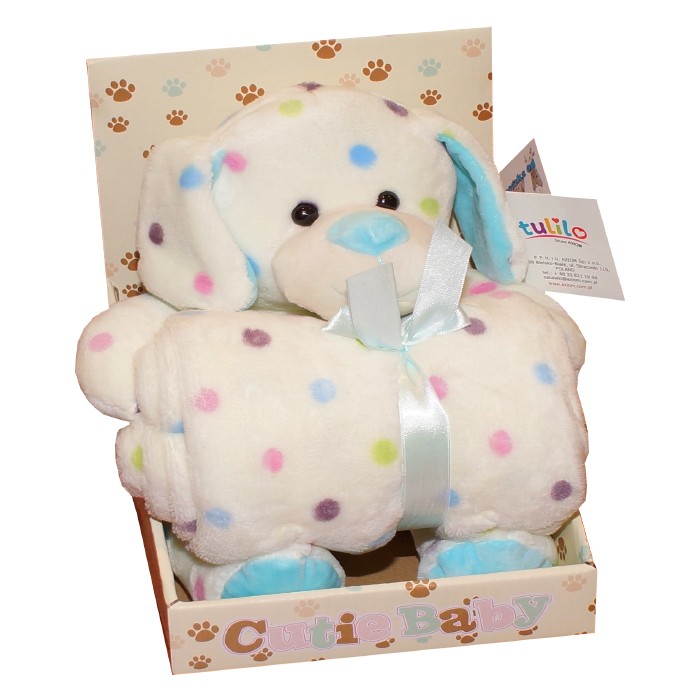 Kropeczka Pies z kocykiem niebieski 25 cm