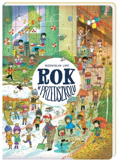 "Rok w przedszkolu" zawiera dwanaście rozkładówek wprowadzających dziecko w życie przedszkolne. Miesiąc po miesiącu towarzyszymy bohaterom w czasie najważniejszych świąt i uroczystości. Obserwujemy codzienne zabawy i naukę. Dwie rozkładówki są poświęcone prezentacji bohaterów oraz interaktywnej zabawie.
