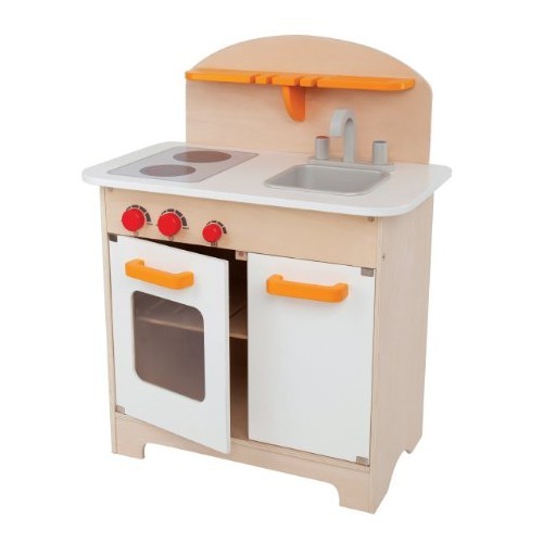 Klasyczna, kolorowa kuchania, wykonana z drewna wysokiej jakości i o solidnej konstrukcji. W wyposażeniu znajduje się lodówka i osobna zamrażalka z otwieranymi drzwiami, kuchenka z palnikami, ruchomymi pokrętłami i otwieranym, dużym piekarnikiem, otwierana kuchenka mikrofalowa, zmywarka i półka nad zlewozmywakiem. Elementem uzupełniającym jest telefon bezprzewodowy i wyjmowany, łatwy do czyszczenia zlew. Produkt amerykański, wewnątrz instrukcja.