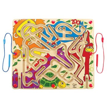 Labirynt magnetyczny "Zoo Zoo'm" to zabawka dla dwulatka, która sprawdzi się zarówno podczas zabawy w domu jak i zabawy dla dzieci w przedszkolu. Zabawa polega na tym, aby za pomocą magnetycznego rysika przeprowadzić kulki po zawiłym labiryncie do wybranego pojazdu.