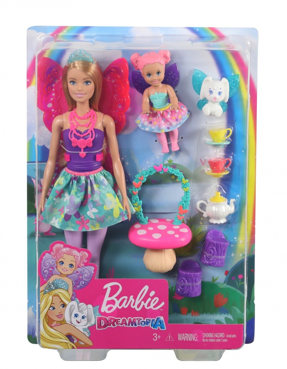 - Dzięki temu rozwijającemu opiekuńczość zestawowi dziewczynki pomogą lalce Barbie urządzić doskonały podwieczorek dla małej wróżki i króliczka.