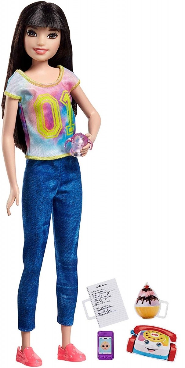 Dziewczynki mogą tak łatwo zostać opiekunkami do dziecka dzięki zestawom Barbie Skipper Klub Opiekunek z lalką i pięcioma akcesoriami potrzebnymi do odegrania klasycznych scenek. Każda opiekunka jest przygotowana na nocne czuwanie przy maluszku i zabrała z sobą ulubioną przekąskę, telefon komórkowy, notatki do nauki, a także butelkę i zabawkę dla dziecka. Młodsze rodzeństwo i mali opiekunowie mogą odgrywać mnóstwo fantastycznych historyjek dzięki zestawom do zabawy z lalką Skipper i jej przyjaciółkami. Wybrane elementy posiadają uchwyty, dzięki którym pasują do dłoni lalek, aby dodatkowo wzbogacić zabawę. Każda lalka ubrana jest w strój podkreślający jej osobowość i posiada ulubioną przekąskę; zabawki dla maluchów zostały stworzone na wzór klasycznych produktów Fisher-Price! Dziewczynki pokochają przeżywać swoje pierwsze przygody jako opiekunki do dziecka, bo z Barbie możesz być kim chcesz! Zbierz wszystkie lalki z serii Klub Opiekunek i akcesoria dla nich, aby wypełnić im czas mnóstwem zabawy. Zawiera lalkę w ubranku i z akcesoriami, a także pięć tematycznie dobranych elementów. Sprzedawane oddzielnie w zależności od dostępności. Lalki nie stoją samodzielnie. Kolory i zdobienia mogą się różnić.