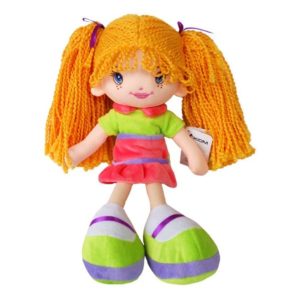 Lalka ma długie, gęste i mięciutkie włosy ozdobione kokardkami. Ma haftowane elementy twarzy i ubrana jest w śliczną, kolorową sukienkę.