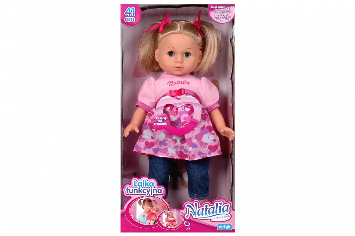 Strona główna Lalki klasyczne Lalka Natalia w sukience w serduszka Cena Netto: 68,78 zł. error_outline Produkt chwilowo niedostępny. Opis Lalka Natalia w sukience w serduszka i jeansowych spodniachMówi po polsku.