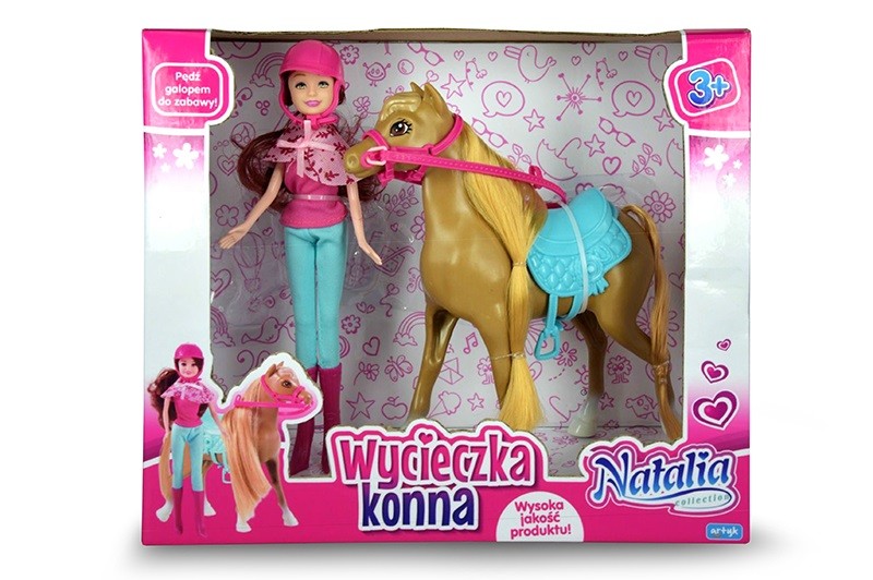 Strona główna Lalki klasyczne Lalka Natalia z koniem Cena Netto: 29,47 zł. error_outline Produkt chwilowo niedostępny. Opis Lalka Natalia z koniemŚwietny zestaw dla dziewczynki która lubi konie i lalki. Natalia w stroju jeździeckim z własnym koniem to zabawka pobudzająca dziecięcą wyobraźnie.