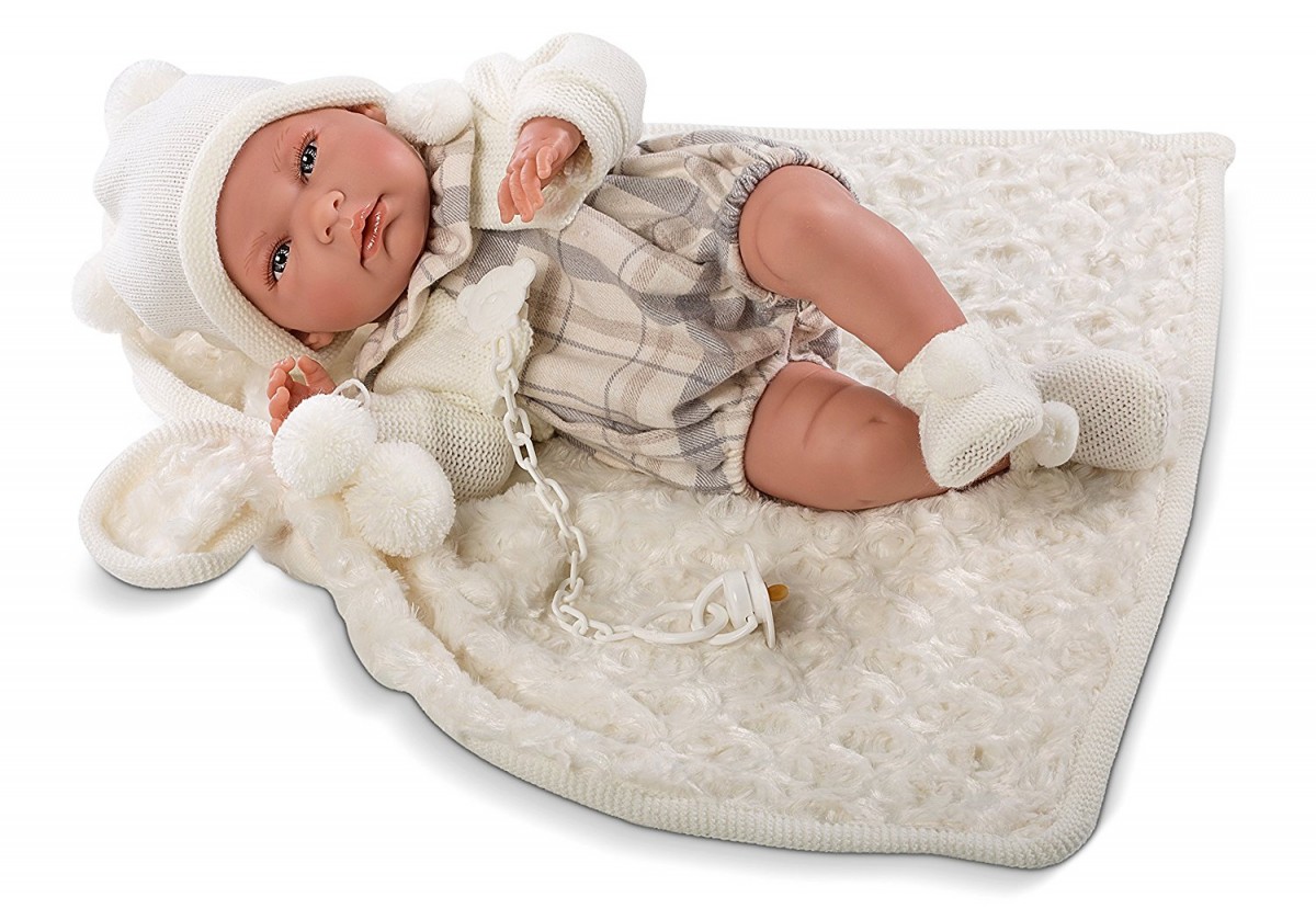 Do lalki dołączony jest jasny kocyk oraz smoczek.