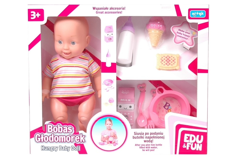 Strona główna Lalki bobasy Lalka bobas z akcesoriami EDU&FUN Cena Netto: 29,47 zł. error_outline Produkt chwilowo niedostępny. Opis Bobas Głodomorek EDU&FUN z akcesoriamiBobas siusia po podaniu butelki napełnionej wodą.