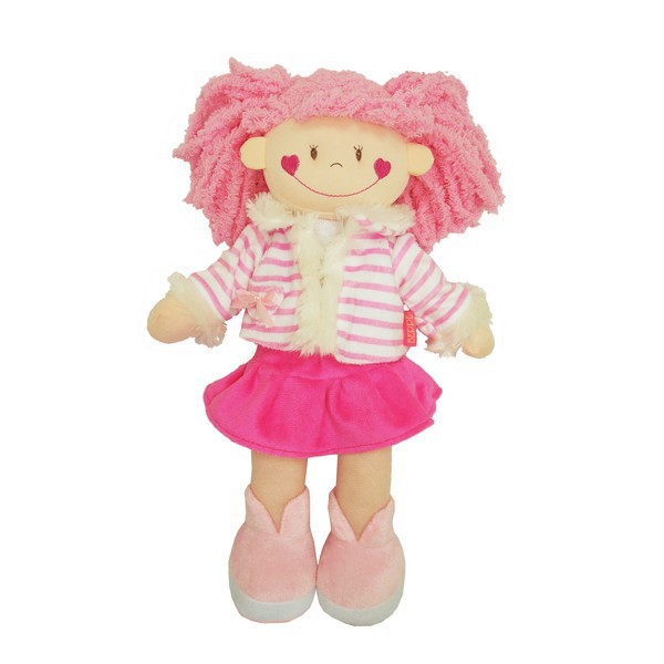 Wesoła i kolorowa lalka szmacianka do przytulania. Pełni funkcję przyjaciółki naszych młodych dam. Długie włosy, związane w dwa kucyki można czesać i ponownie splatać w warkocz. Laleczka ubrana w krótką sukieneczkę, oraz w kurteczkę.