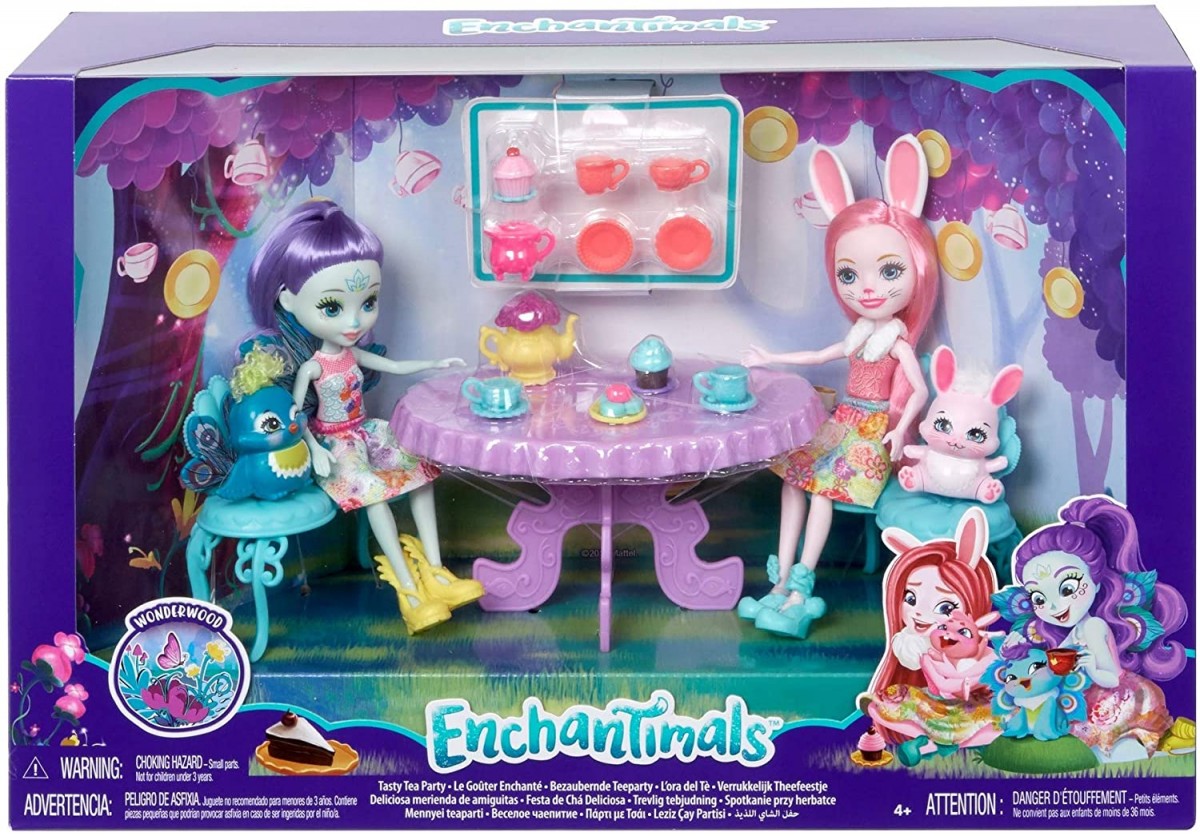 Lalki Enchantimals są ubrane w piękne stroje na herbatę. Małe dzieci mogą bawić się w fantastyczną zabawę dzięki zestawowi do zabawy na herbatę Enchantimals. Zestaw zawiera 2 lalki, 2 figurki zwierząt i ponad 15 akcesoriów. Każdy zestaw sprzedawany jest osobno, w zależności od dostępności. Kolory i dekoracje mogą się różnić.
