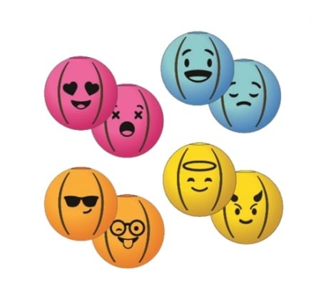 W asortymencie 4 wspaniałe neonowe kolory oraz lubiane i rozpoznawalne buźki emoji!
