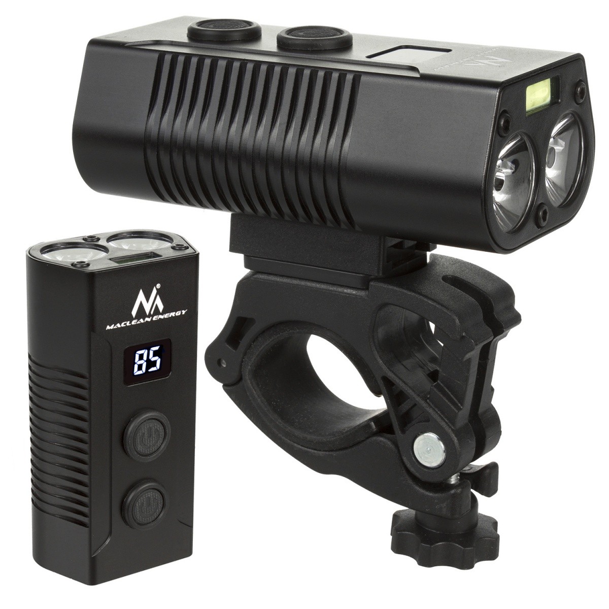 Wysokiej jakości latarka rowerowa z powerbankiem renomowanej firmy Maclean Energy.