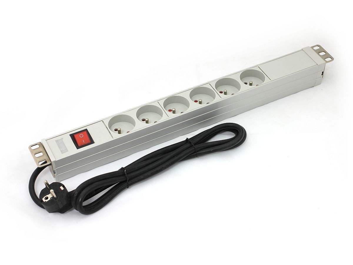 Listwa zasilająca PDU 19" RACK 6xTyp E, kabel 1.8m z wtyk Schuko, wł./wyłącznik, aluminiowa
