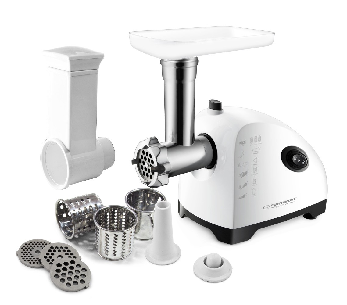Maszynka mielenia do mięsa Esperanza RISSOLE to nowoczesne i funkcjonalne urządzenie, które z powodzeniem można używać w każdej kuchni. Trzy tarcze o różnych średnicach otworów (2,7 mm, 4 mm, 8 mm) można stosować nie tylko do mielenia mięsa ale i innych produktów spożywczych. Urządzenie posiada dodatkowe nasadki do wyrabiania kiełbas i kulek kebbe. Urządzenie jest również wyposażone w zestaw szatkownic, dzięki którym można z łatwością uzyskać cieńsze lub grubsze wiórki lub plasterki. Smacznego!
