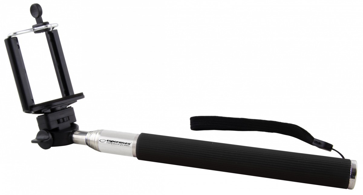 Monopod posiada głowicę ze śrubą 1/4" do mocowania aparatów fotograficznych oraz uchwyt do smartfonów.