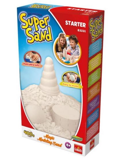 - Super Sand Starter Zestaw startowy, pozwalający zacząć zabawę lub uzupełnić braki w już posiadanych zestawach. W zestawie znajduje się wyłącznie piasek Super Sand.