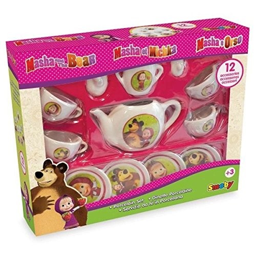Strona główna Zabawy kreatywne zabawa w dom Masha i Niedźwiedź, Zestaw porcelany Cena Netto: 30,50 zł. error_outline Produkt chwilowo niedostępny. Opis Masza i Niedźwiedź PorcelanaPorcelanowa zastawa do herbaty z wizerunkami postaci z bajki. W zestawie 12 akcesoriów, w tym imbryczek, cukierniczka, 4 filiżanki ze spodeczkami.