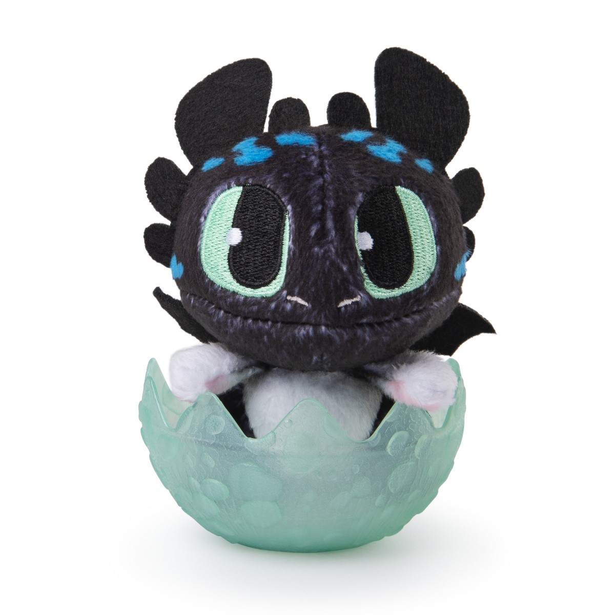 Wykluj własnego, miękkiego smoka! Twoje ulubione smocze postacie z filmu "Jak wytresować smoka": Ukryty świat jest teraz dostępny w pluszu. Odkryj smocze Jajko z unikalnym wzorem i podnieś górę jajka, aby odkryć w środku magiczną smoczą niespodziankę. Każdy śliczny smok ma wielkie, urocze oczy. Możesz użyć dolnej części jaja jako przytulnego gniazda! Którego smoka wyklujesz? Do zdobycia Szczerbatek, Wichura, Sztukamięc i inne!