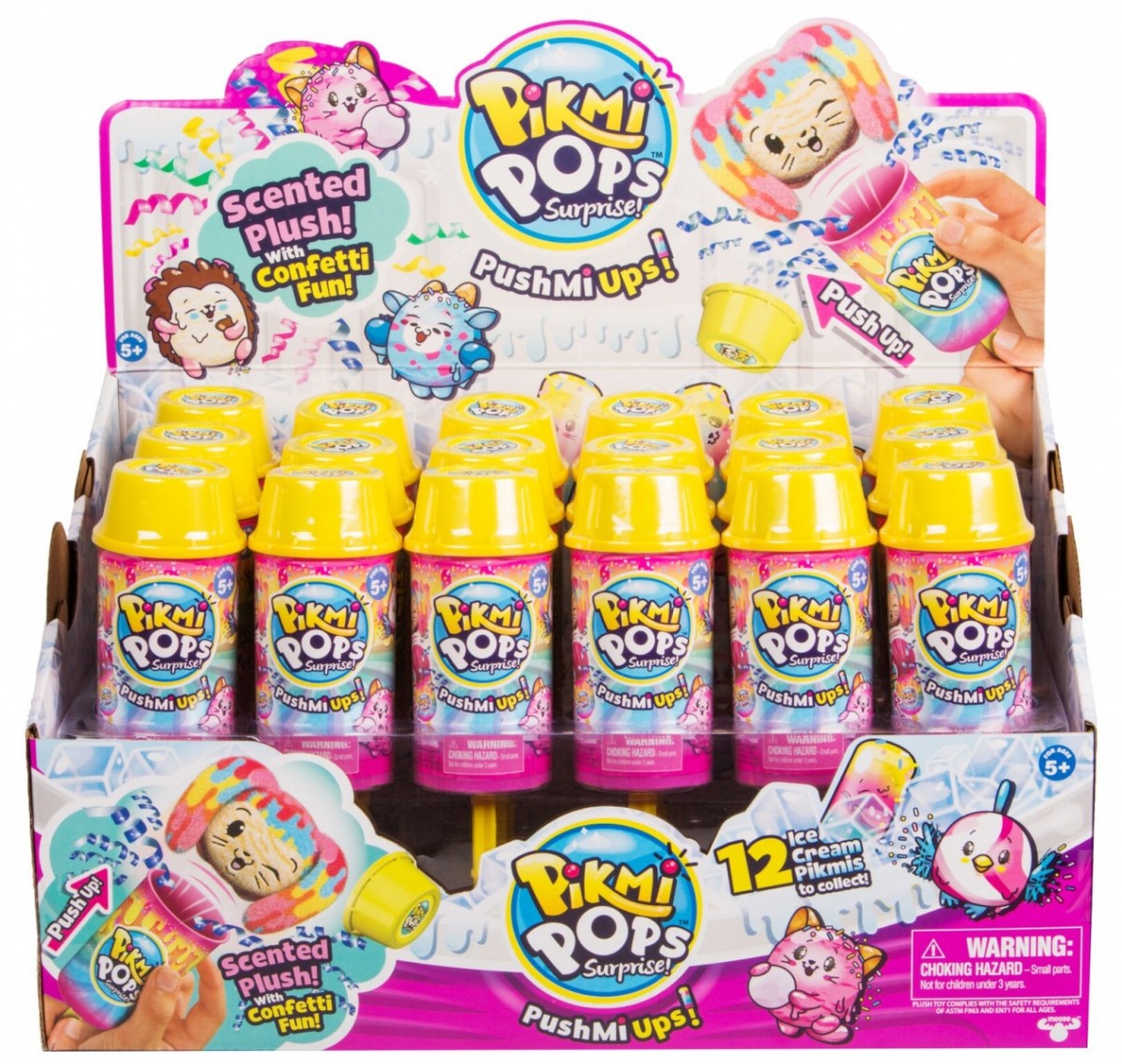 Każdy Pikmi Pops PushMi zawiera: 1 pluszaczka, wiadomość niespodzianke, konfetti, wystrzeliwarkę PushMi.